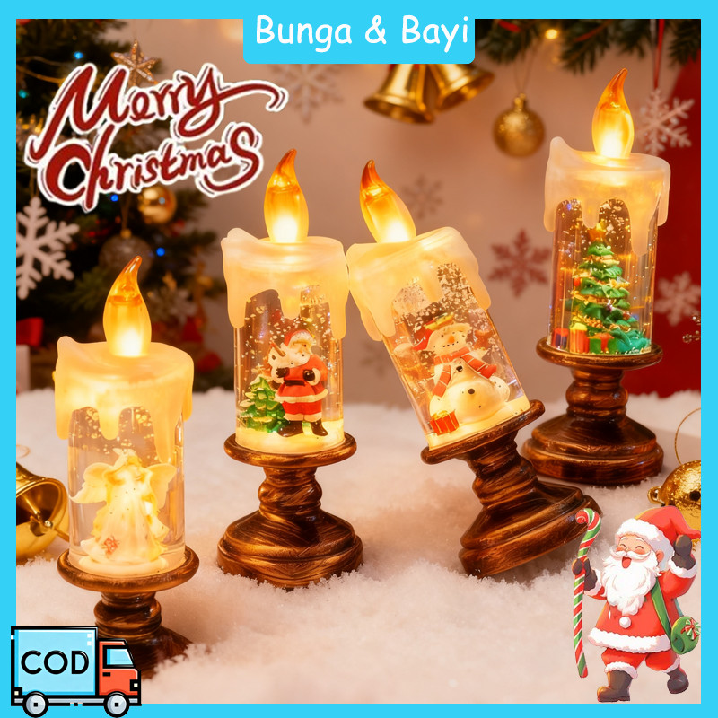 LED Elektrik Bentuk Lilin Lampu Natal Dekorasi Lilin Lampu Hiasan Natal Lucu Lampu Santa Hadiah Natal Kreatif
