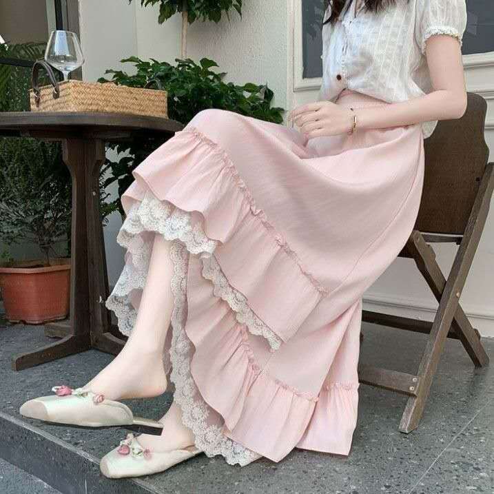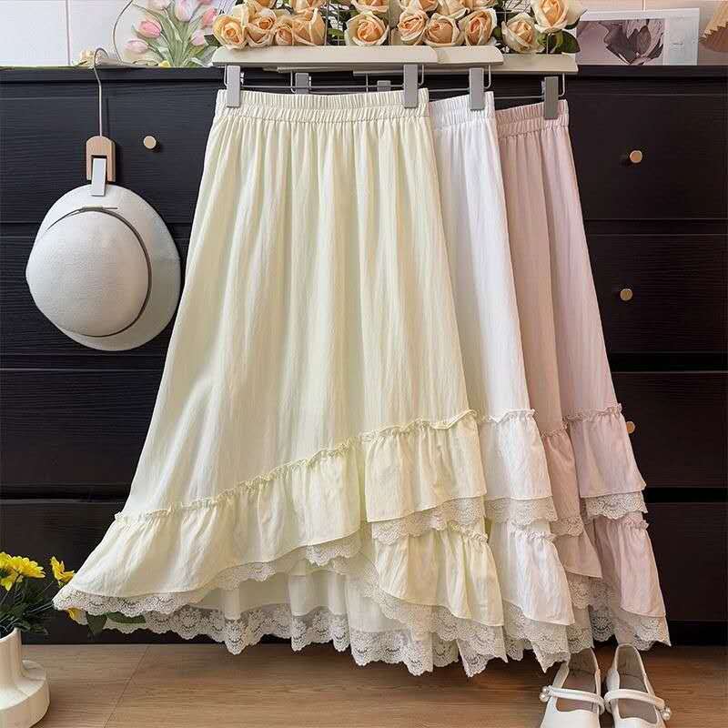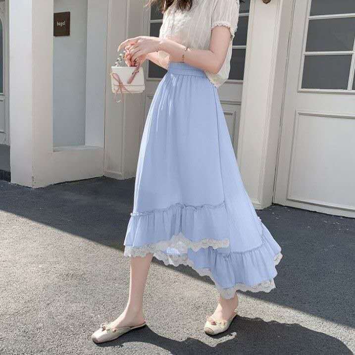Rok Panjang 88cm Hijab Friendly Korea Asimetris Ruffle dengan Renda Cantik 4 Warna