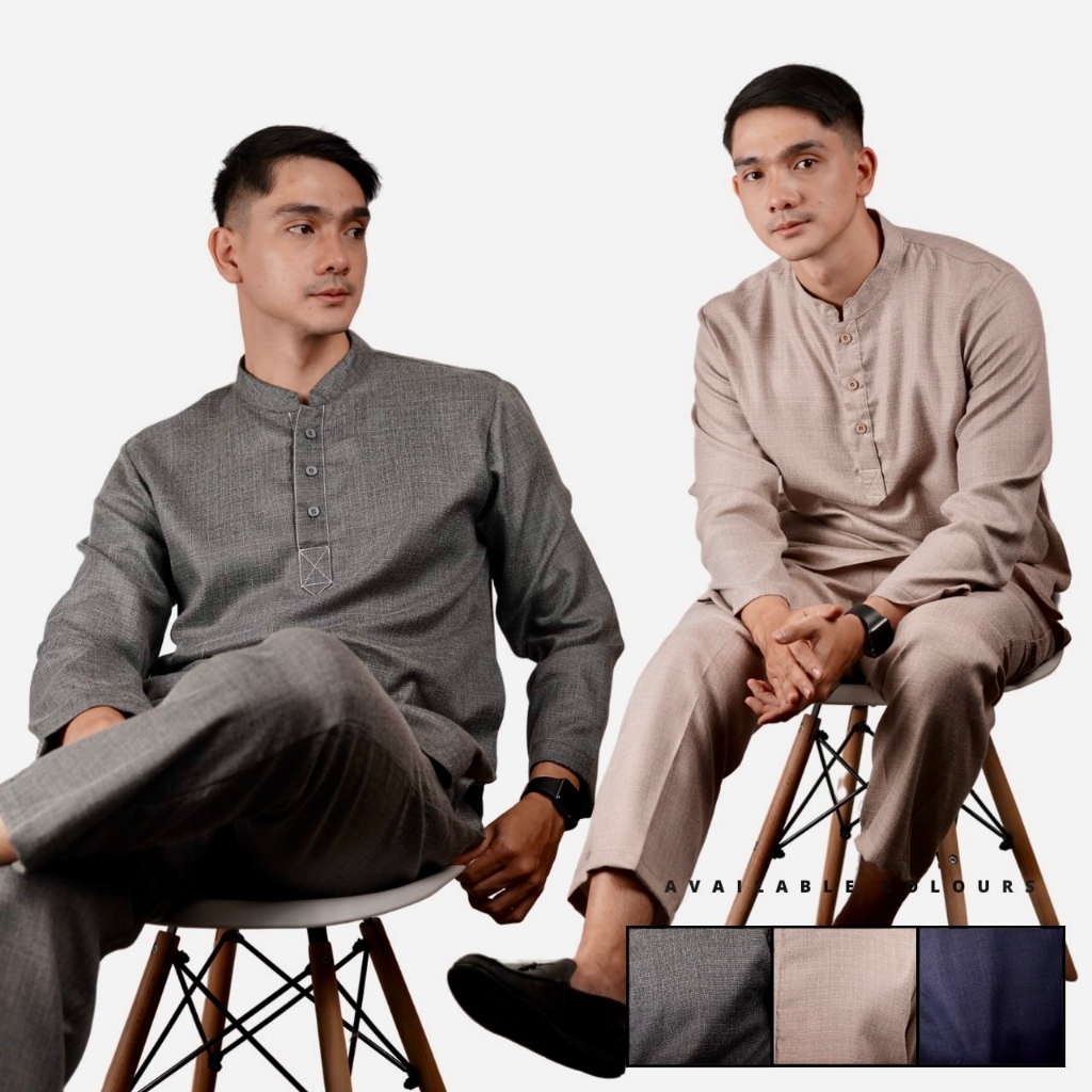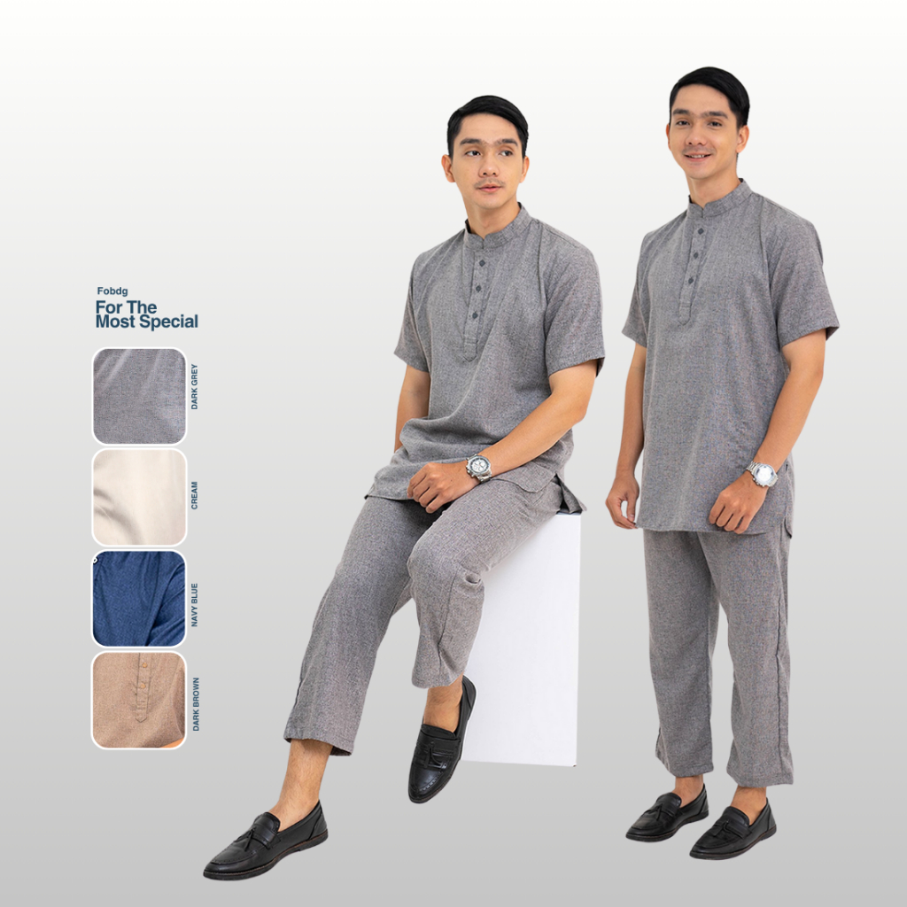 Fobdg Baju Koko Setelan Bariyah Lengan Panjang set baju dan celana Tersedia 3 Warna Motif Polos