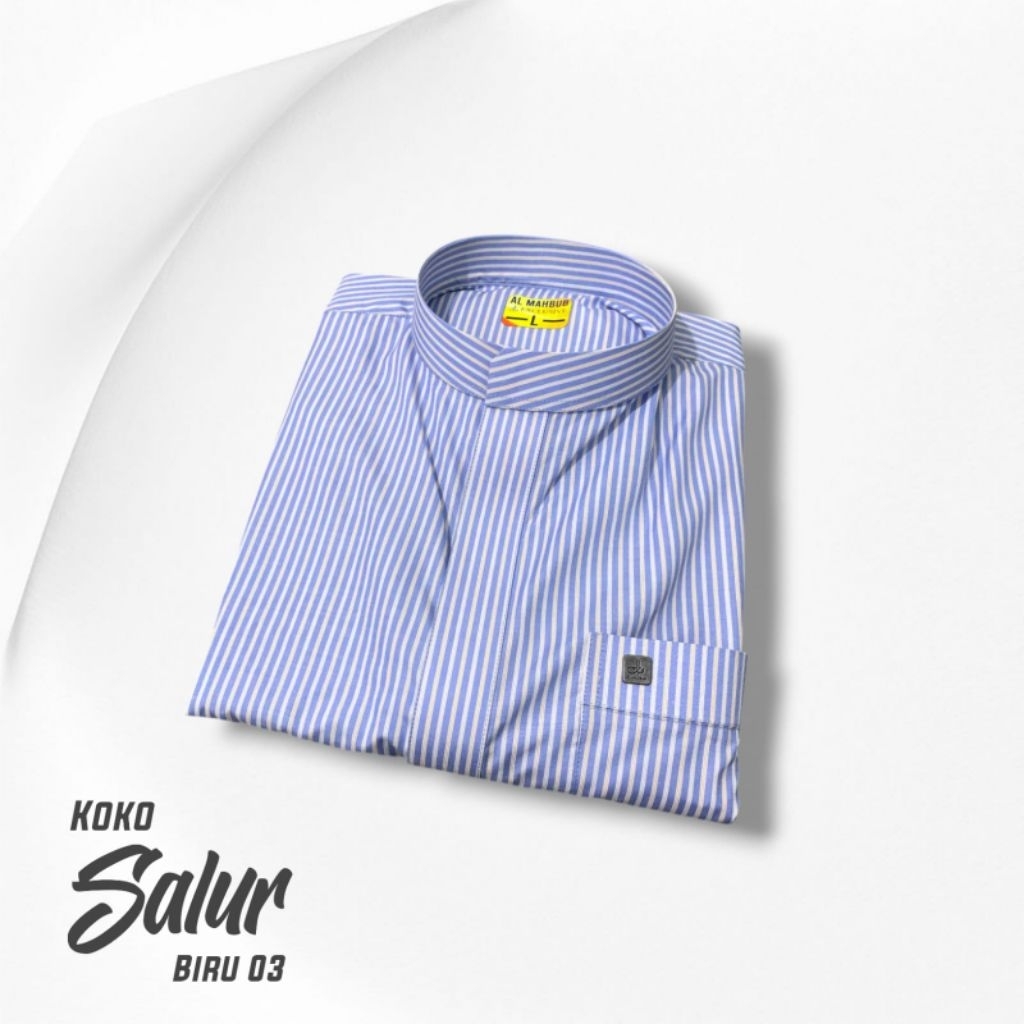 Baju Koko lengan panjang motif Salur garis garis, Koko atasan pria yang lagi ngetrend kain katun premium Al Mahbub