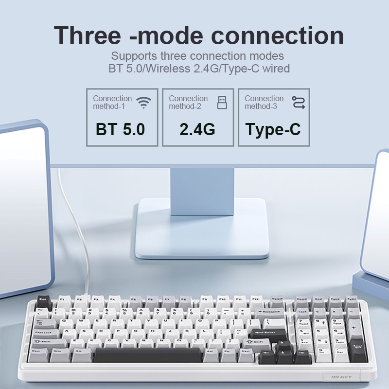 Aula F99 Wireless Gaming Keyboard Bluetooth Mechanical Keyboard Hot Swappable Custom Creamy Computer Keyboards RGB