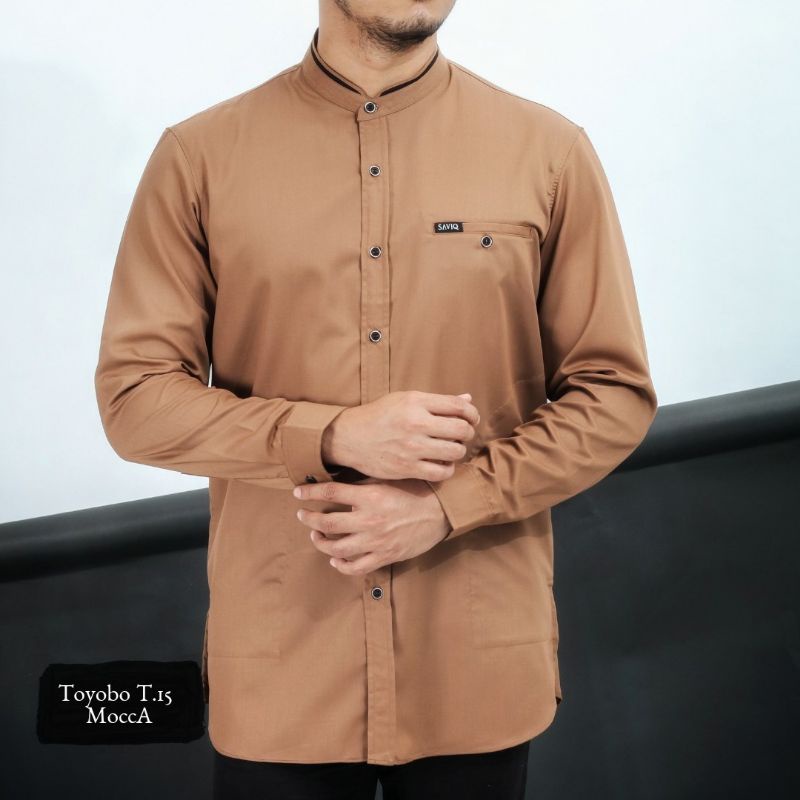 Kemeja koko Pria Lengan panjang List leher bahan toyobo kode T.015