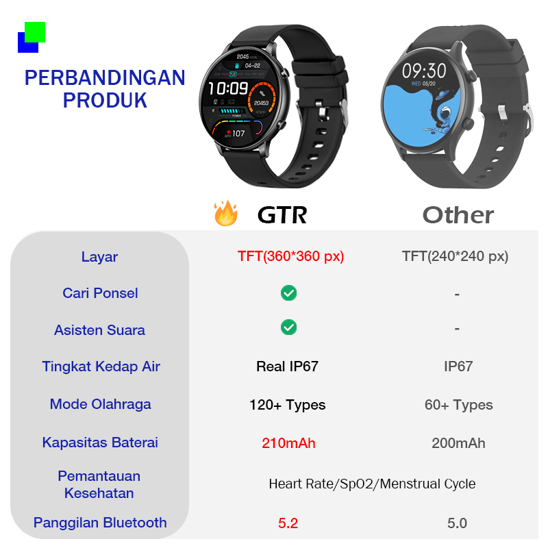 Aolon GTR Jam Smartwatch Waterproof 1.39 Inch HD Touch Screen Kalkulator Wallpaper Kustom Jam Tangan Pria Wanita Heart R