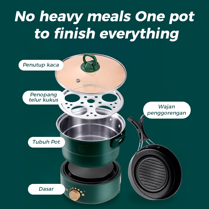 Panci Listrik Watt Rendah Serbaguna 2.2L / Kompor Elektrik Portable / Travel Electric Cooker / Kompor Listrik Multifungs