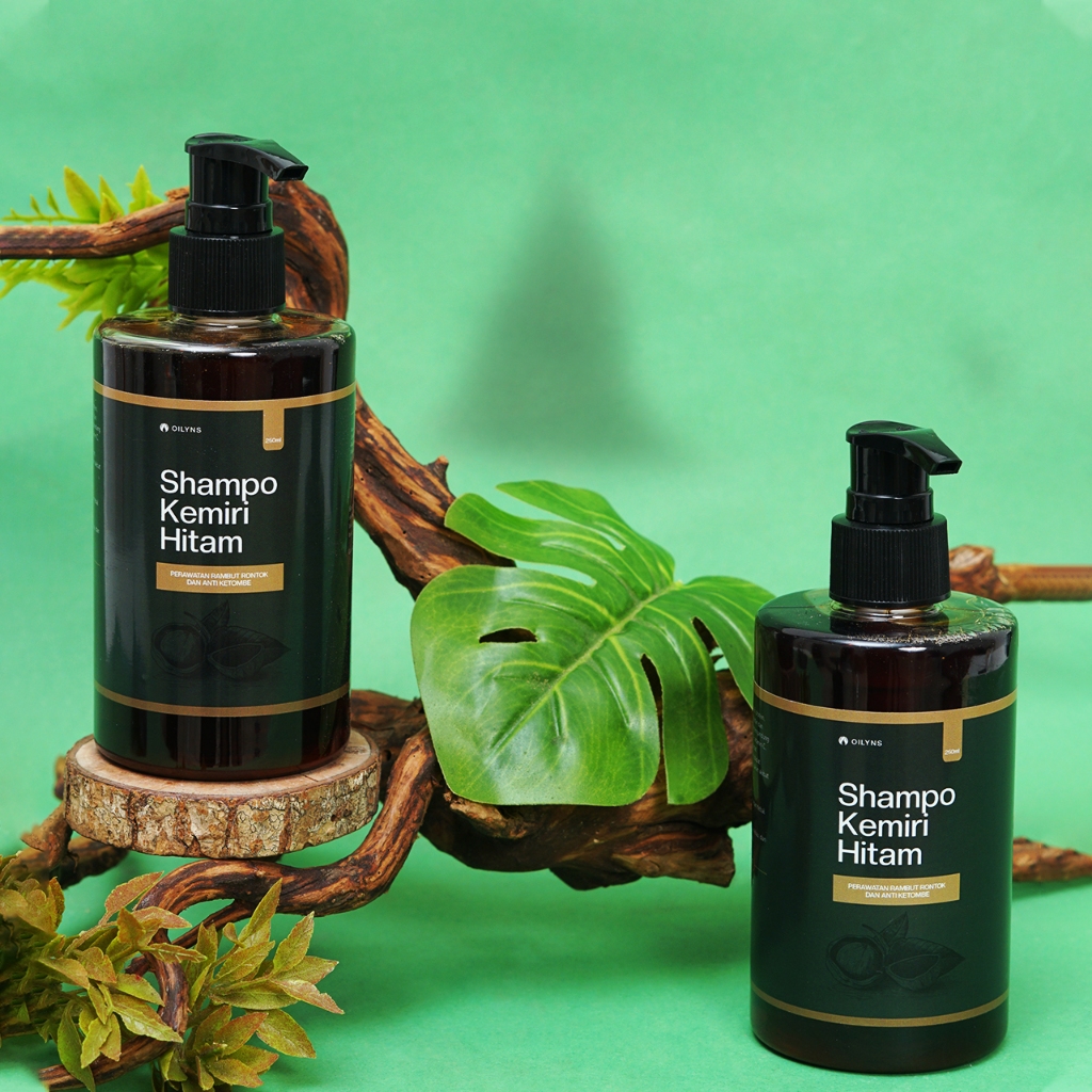 Oilyns Shampo Kemiri Hitam 250ml BPOM Anti Rontok Penumbuh Rambut Menebalkan Menghitamkan Uban