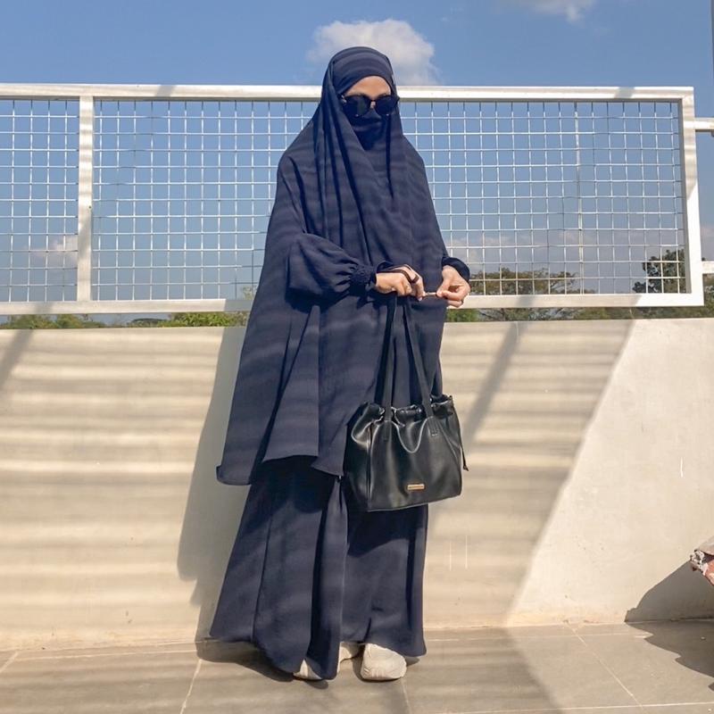 Inara One Set Crinkle Airflow Syari Set Frenchkhimar dan Rok keknian BIsa