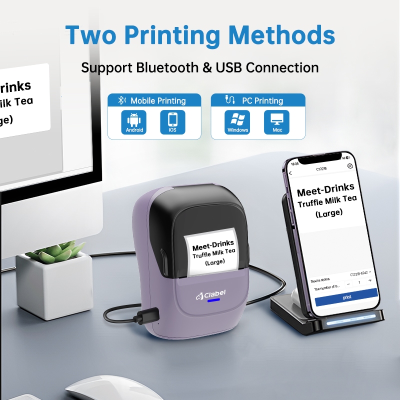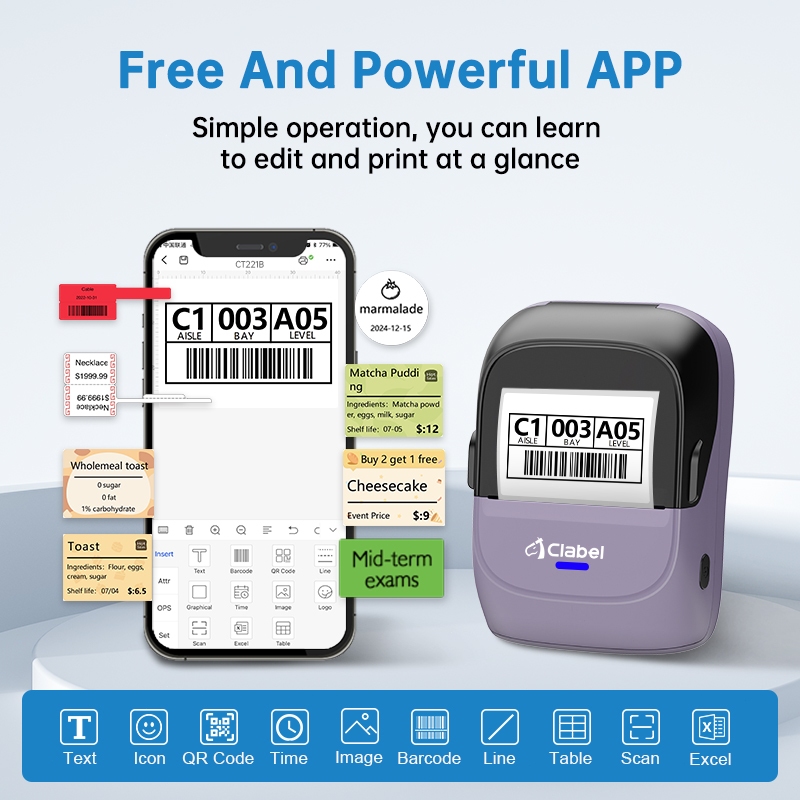 CLABEL 221B Portable Label Printer Bluetooth Suitable For Name Sticker ,Label Nama Small Printer