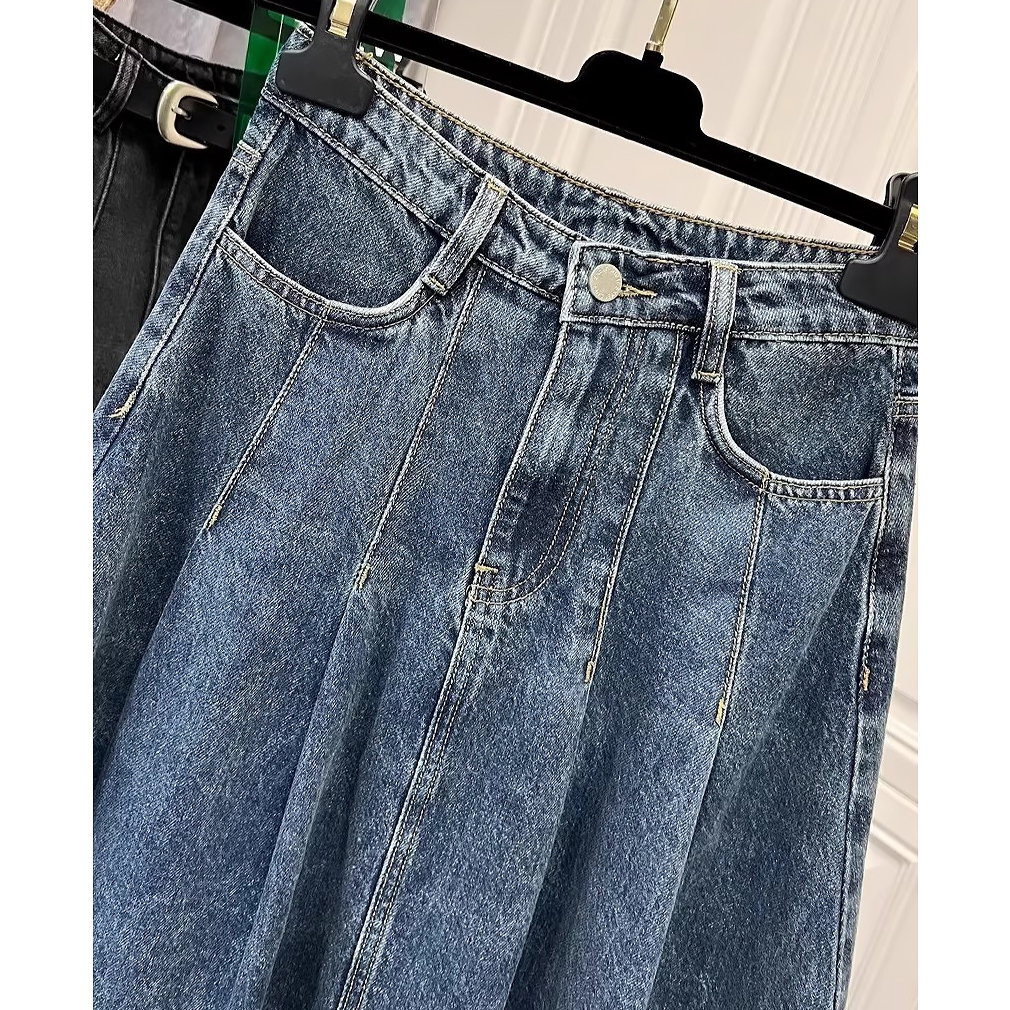 Keygirl Rok Jeans Panjang Sedang Highwaist 7/8 Slim Fit dan Versatile Sampai Lutut Model 2025