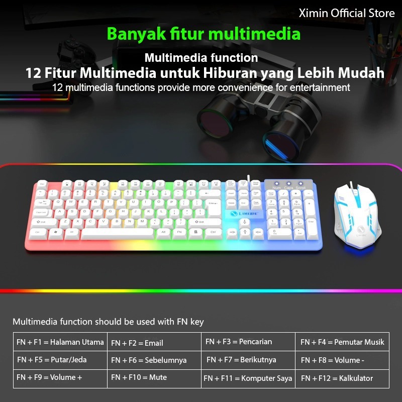 keyboard wereless Xim PC Keyboard Mouse RGB Gaming dengan Lampu RGB Cahaya / Termasuk Mouse dan Keyboard - Keyboard Meka