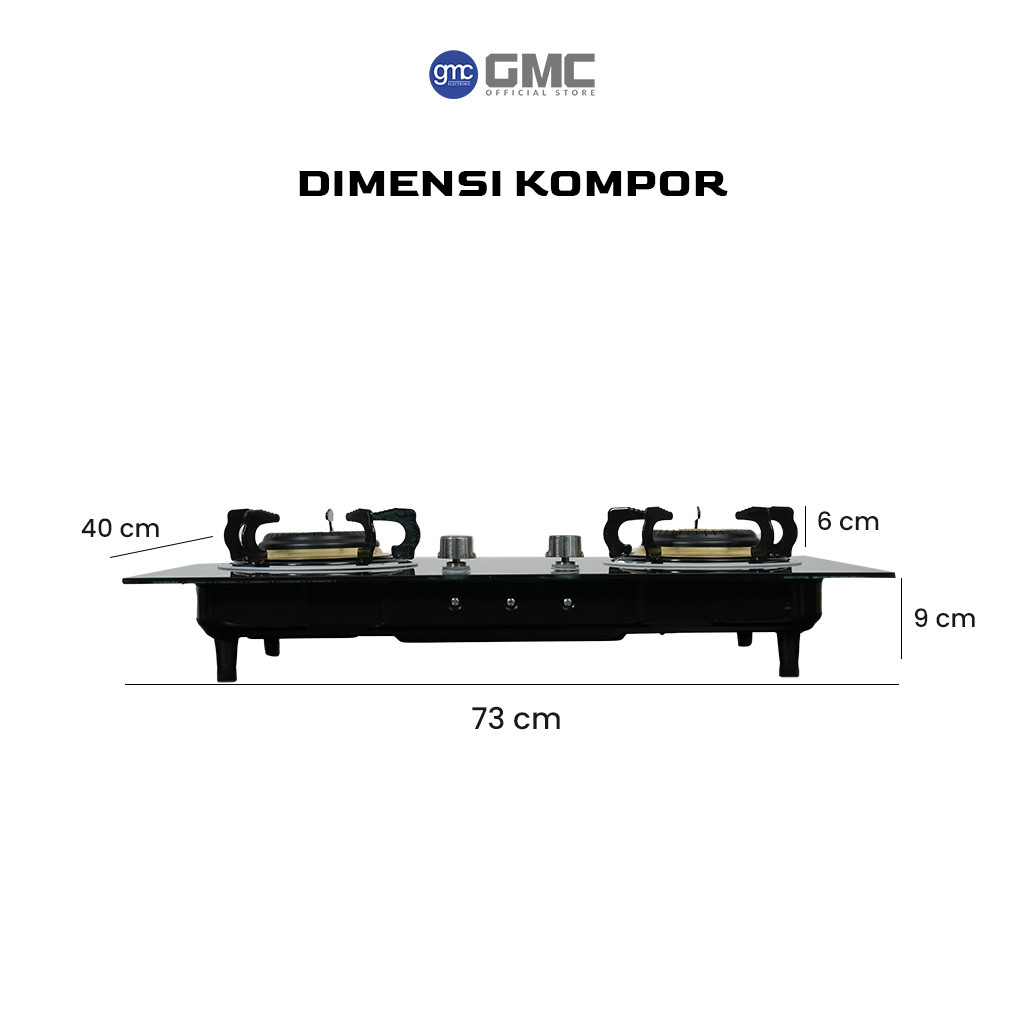 GMC Kompor Kaca Premium 626 2 Tungku Tempered Glass PremiumTekanan Rendah Api Biru Stabil