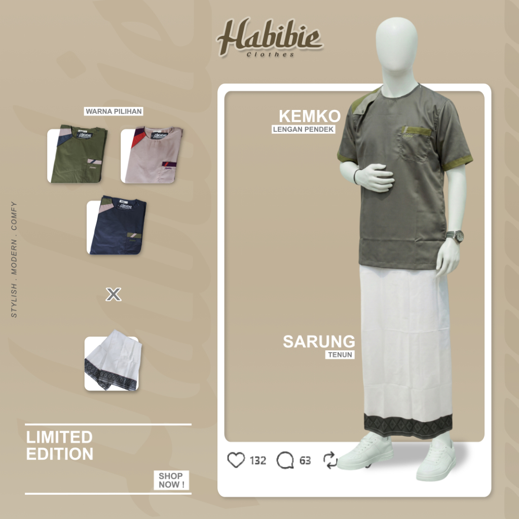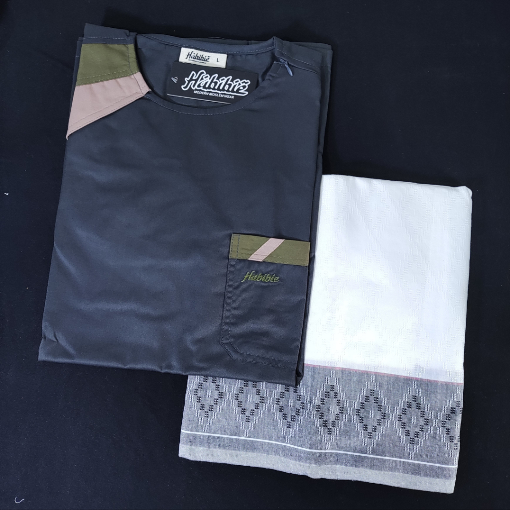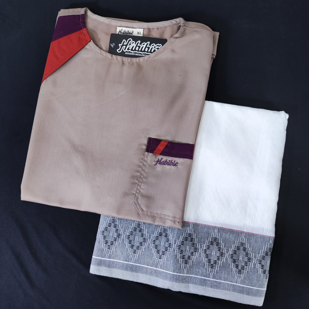 Setelan Baju Koko Dewasa Kemeja KurtaToyobo Lengan Pendek Plus Sarung Tenun Dobby