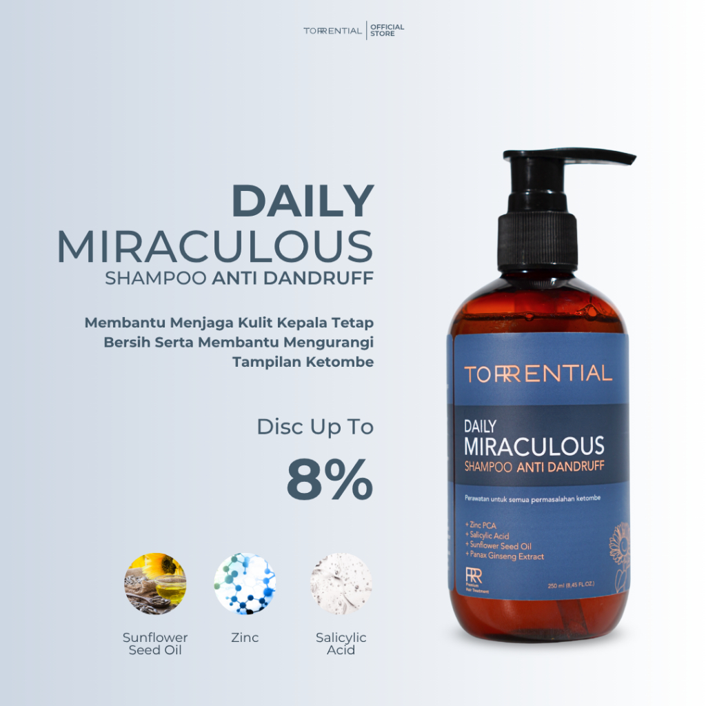 TORRENTIAL Shampoo Anti Ketombe - Daily Miraculous Shampoo - Membantu Menjaga Kulit Kepala Tetap Bersih Serta Membantu M