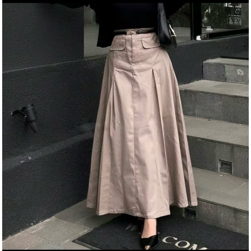 ROK ALICE KATUN TWIILL PREMIUM ROK KOREAN STYLE KEKINIAN MODEL ALINE MAYUNG LEBAR