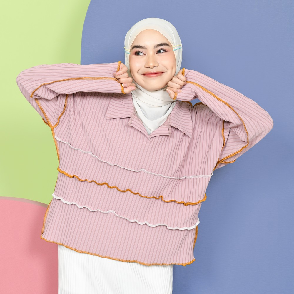 Mybamus Yuna Playfull Knit Tops – Atasan Muslim Wanita – Blus Knit Lengan Panjang