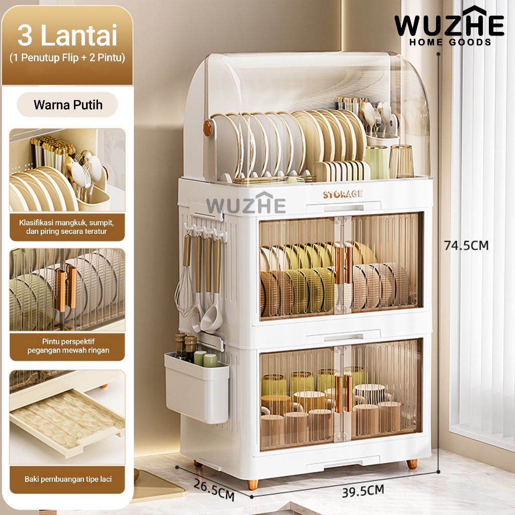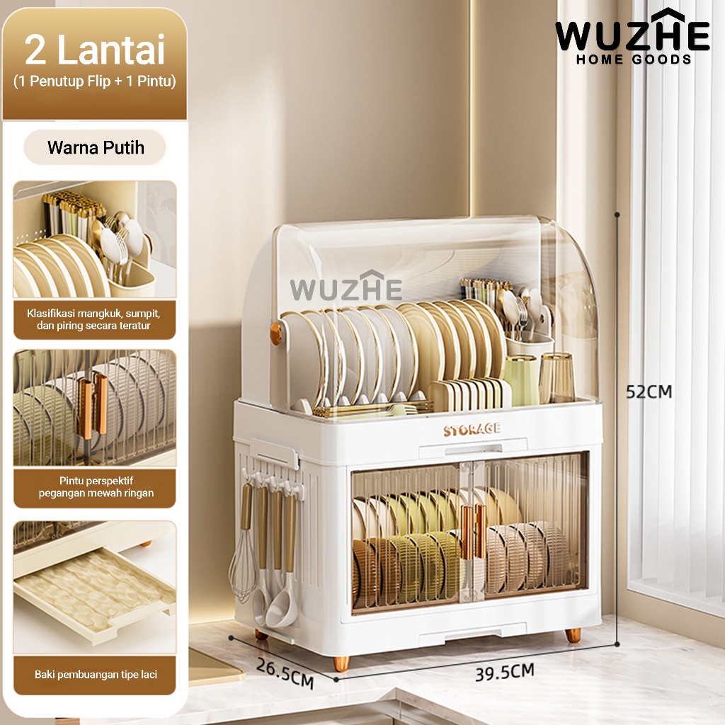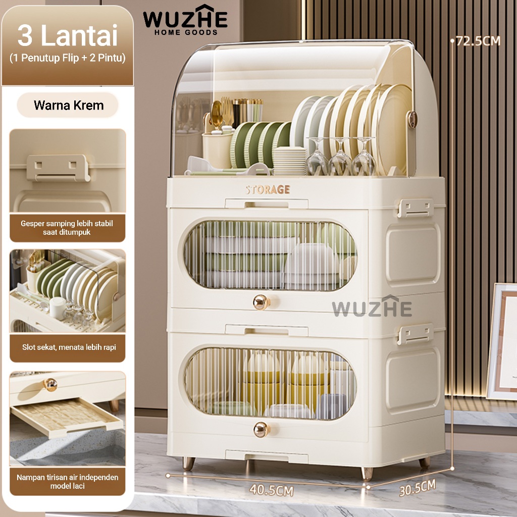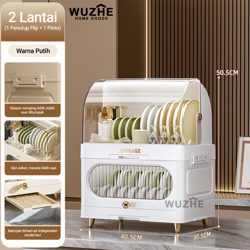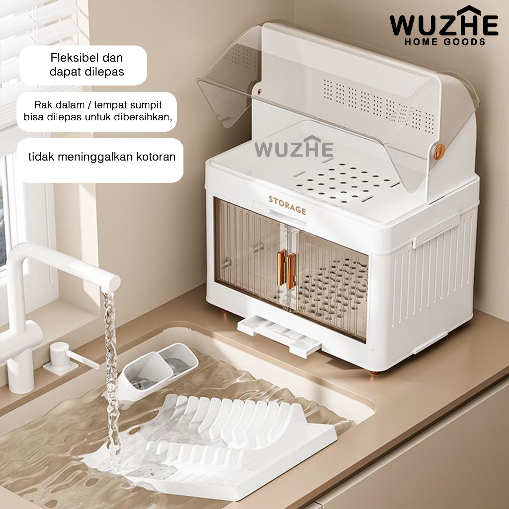 WUZHE Rak Piring Plastik Tertutup Rak Pengering Piring Lipat Rak Cuci Piring Rak Mangkok Dapur