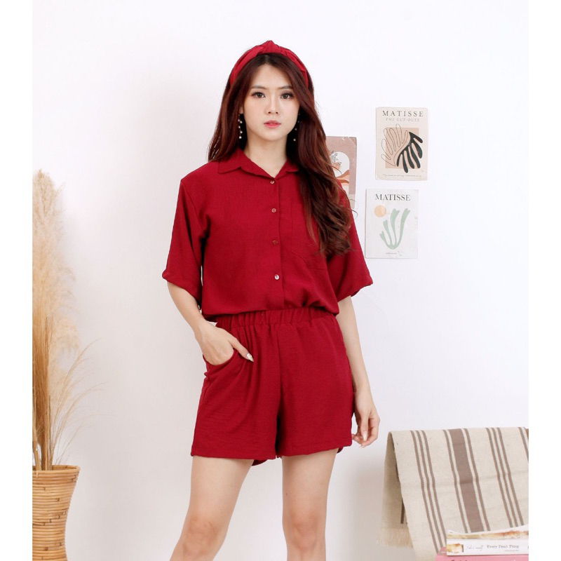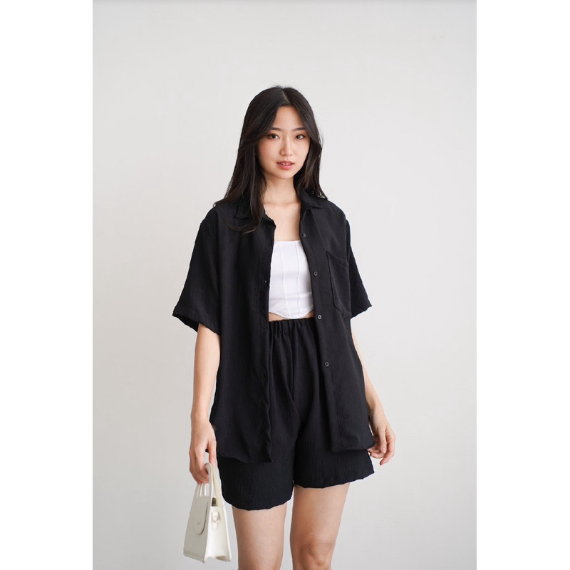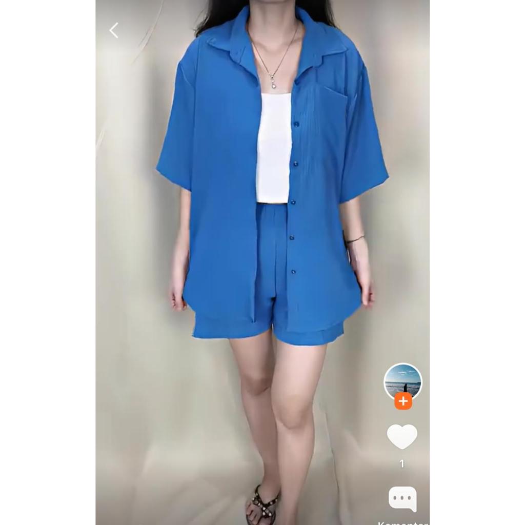 Toply shop - Setelan kemeja + pans / Set kora / Setelan wanita korean style cey krinkle premium