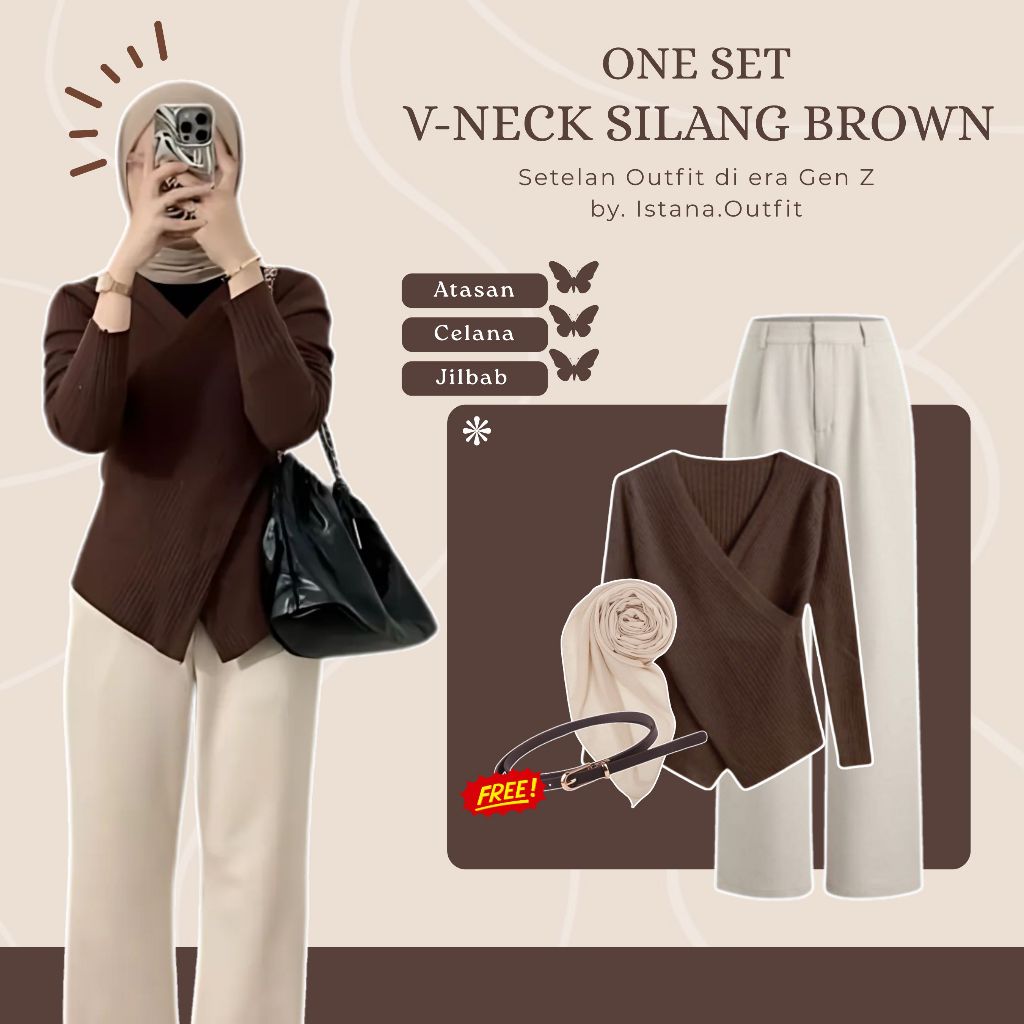 Baju Atasan Wanita | Blouse Rajut, Celana & Jilbab | One Set Wanita Kekinian 3in1 IO103N
