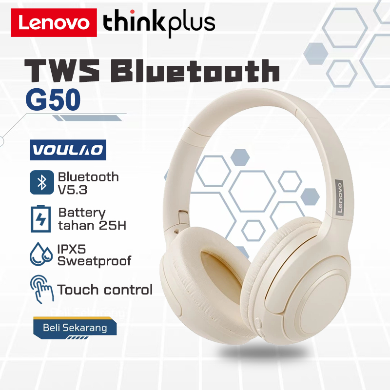 FLASH SALE VOULAO X Lenovo thinkplus G50 Headphone Wireless Bluetooth V5.3 Stereo Bass Earphone Dibangun Dalam Mikrofon Headset HI