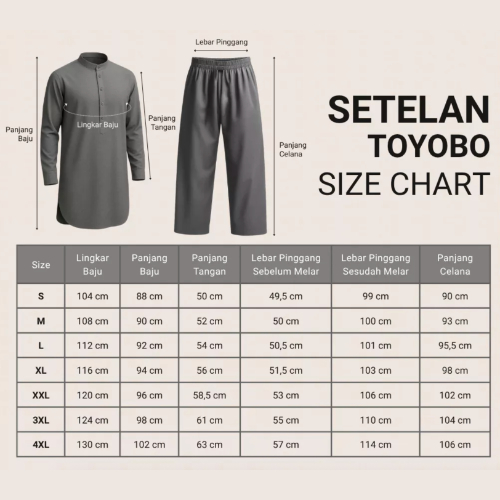 Setelan Koko Kurta Pria Lengan Panjang Katun Toyobo - Stelan Baju Muslim Pria Kurta Jumbo