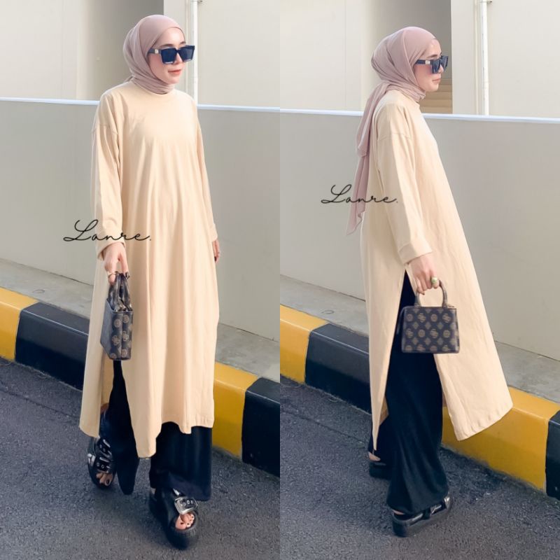 Nuna Tunik Busui - Midi Dress Busui High Slit - Tunik Jumbo Bahan Kaos - Atasan Warna Putih Agustusan