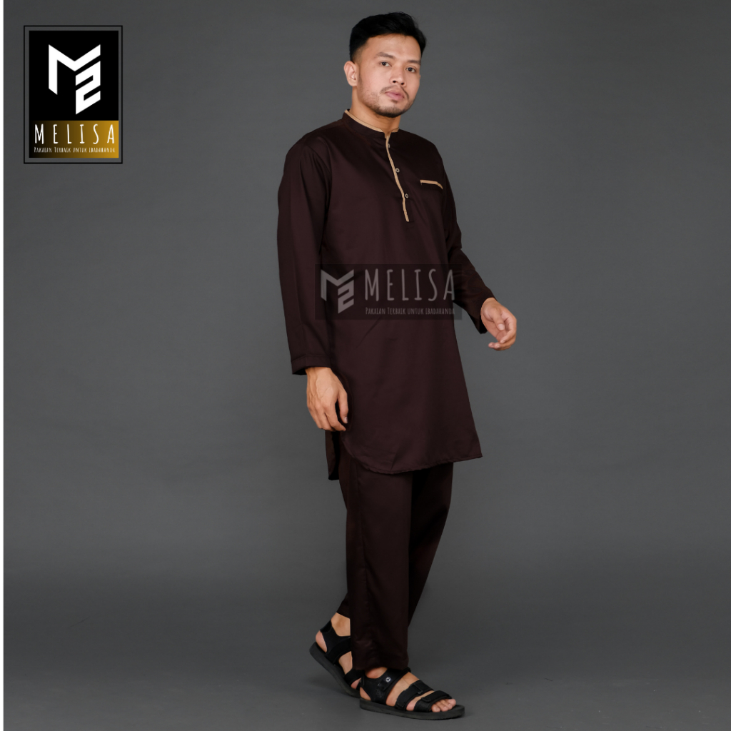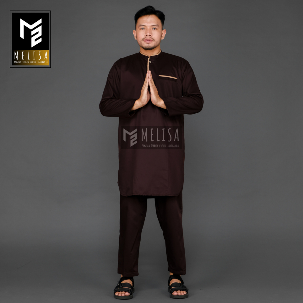 Baju Koko Pria Setelan Kurta Pakistan Lengan Panjang Bahan Katun Toyobo Koko Muslim Dewasa Remaja Pria Laki Laki-Coklat