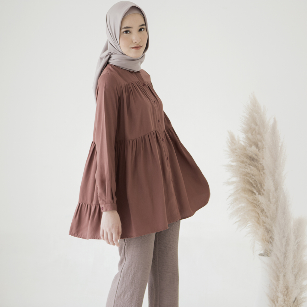 Gendhis by Aska Label - Atasan wanita muslim rayon warna putih offwhite, raspberry maroon busui friendly dengan kerah