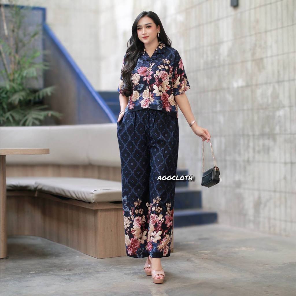 ONE SET CROP SETELAN CELANA KULOT WANITA HIGHTWAIST RAYON PREMIUM BUSUI FRIENDLY aggcloth