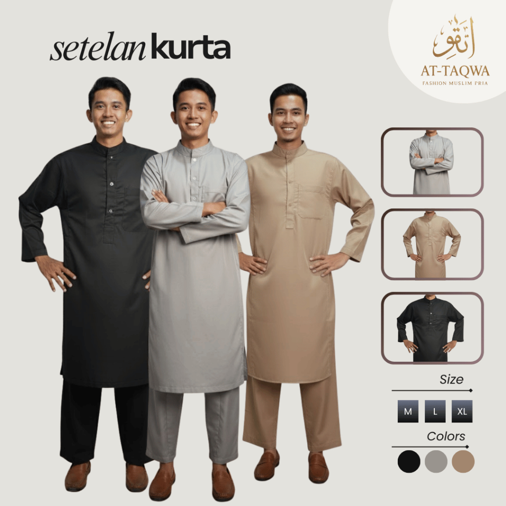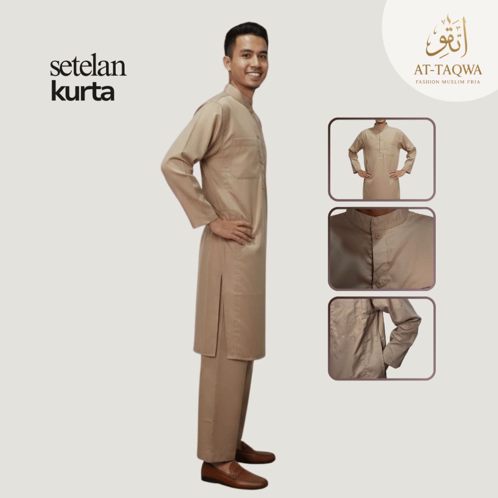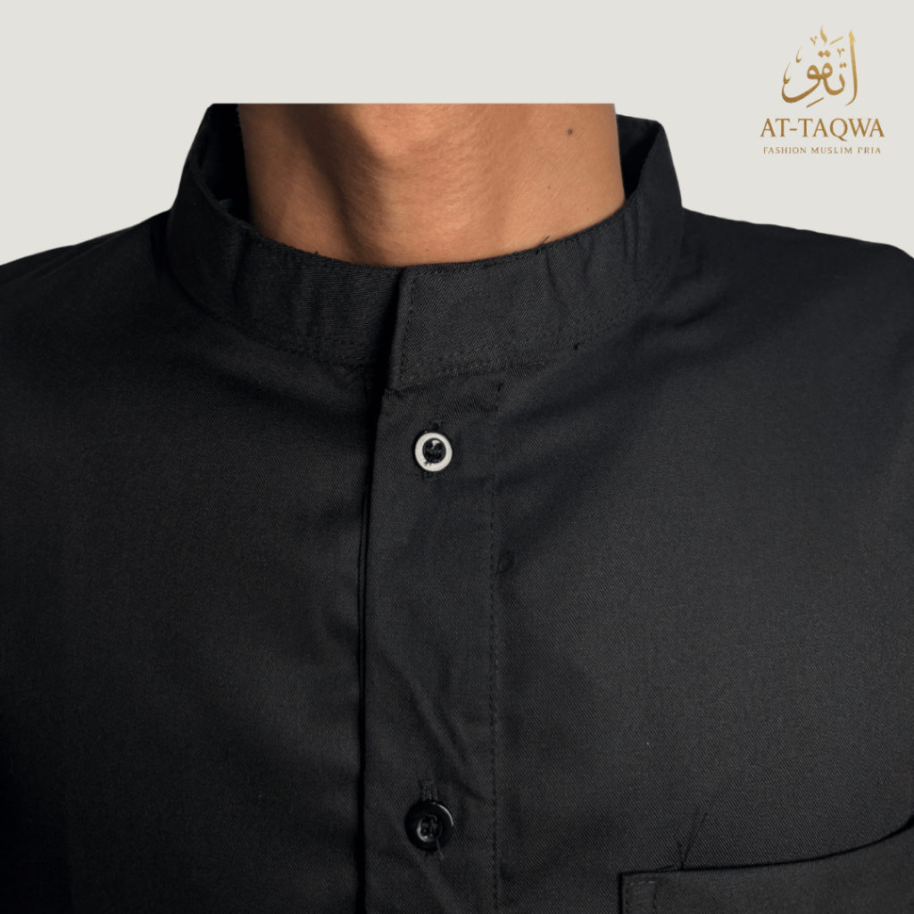 Setelan Koko Kurta Lengan Panjang + Celana Sirwal Polos Bahan Katun Toyobo - Baju Muslim Pria Modern