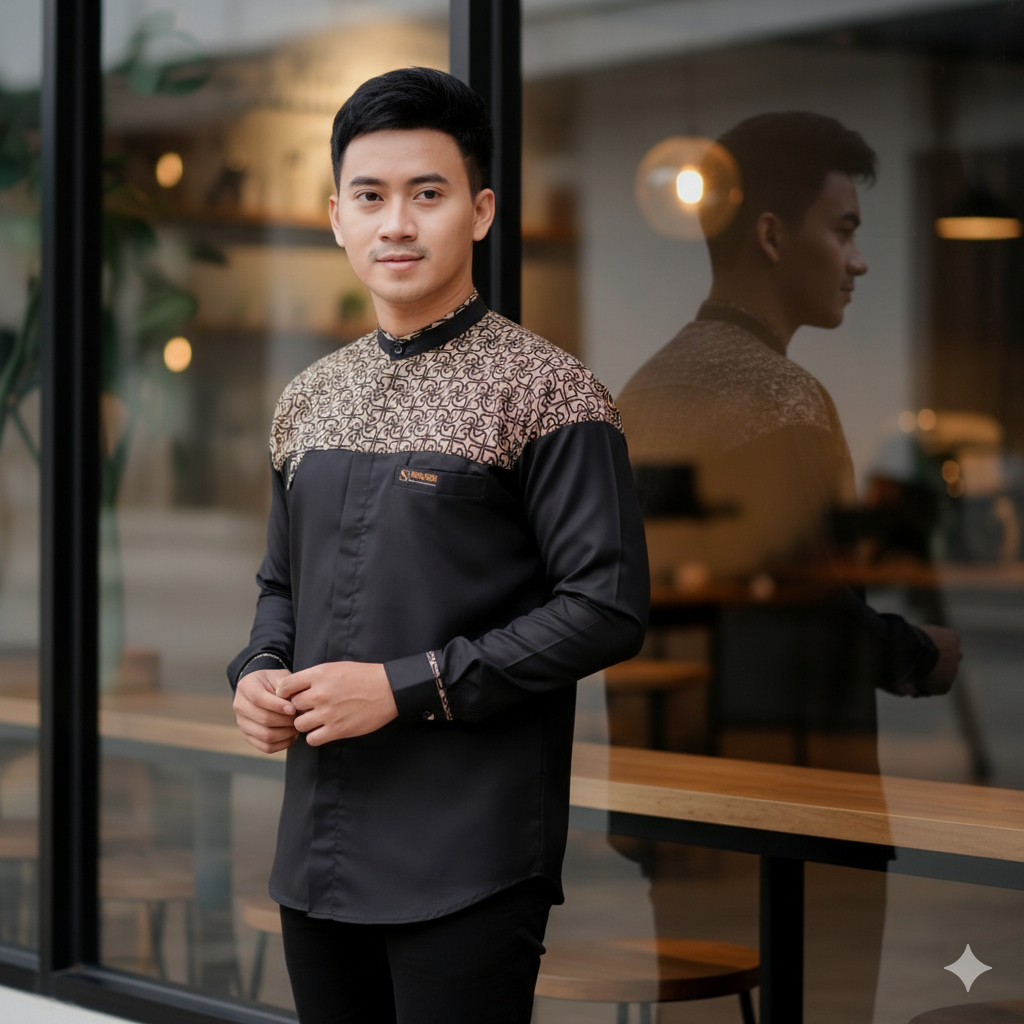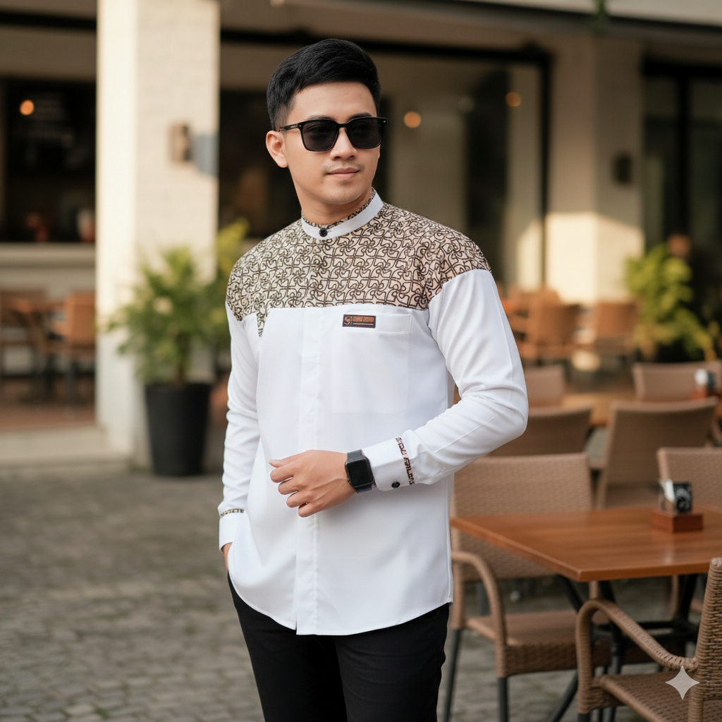 EL.SOF - Kemeja Baju Koko Pria Lengan Panjang Kombinasi Batik Klasik Motif Bima Bahan Katun Toyobo
