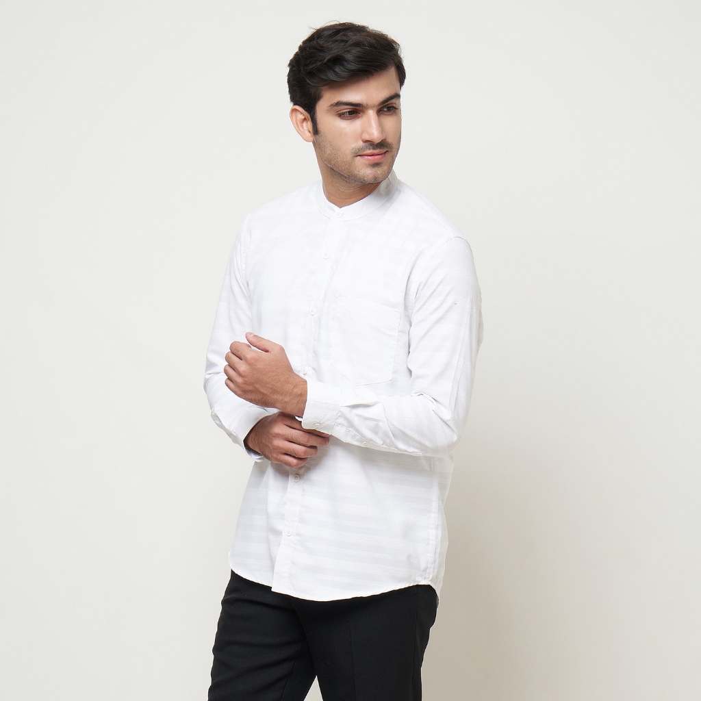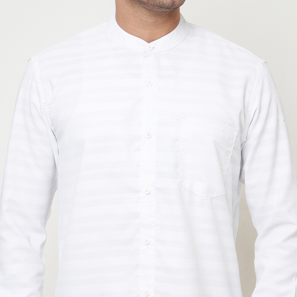 ALINO OFFICIAL Baju Kemeja Koko Pria Salur Stripe Kerah Sanghai Lengan Panjang - S003 - Putih
