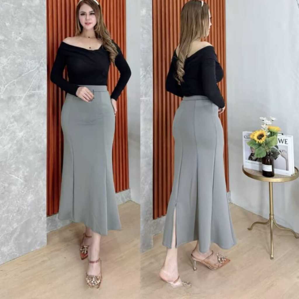 Rok Mermaid Skirt Scuba Premium - Rok Lunar Skirt Bahan Scuba - Midi Skirt Rok Wanita