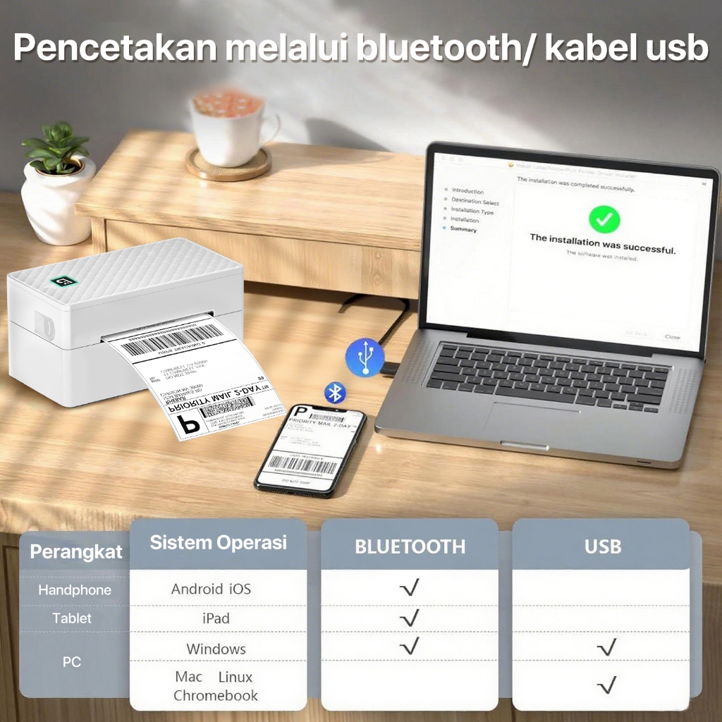 Rhebar BY-482BT A6 Printer label pengiriman Sticker Printer Resi Printer barcode USB+Bluetooth