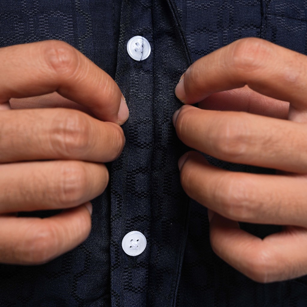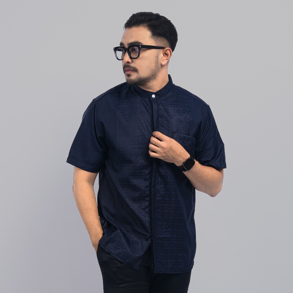 DGM Baju Koko Pria Bordir Lengan Pendek Premium Deep Navy Motif Rantai Baju Koko 3118
