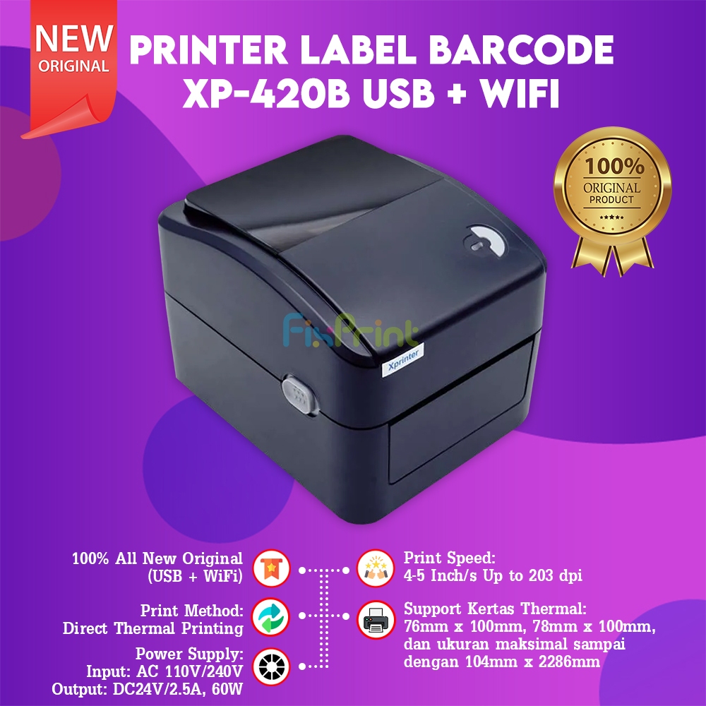 Fixprint Printer XPrinter 423B BT-112 USB + Bluetooth Bare Cetak Label Marketplace Online XP420B Interface WIFI / Blueto