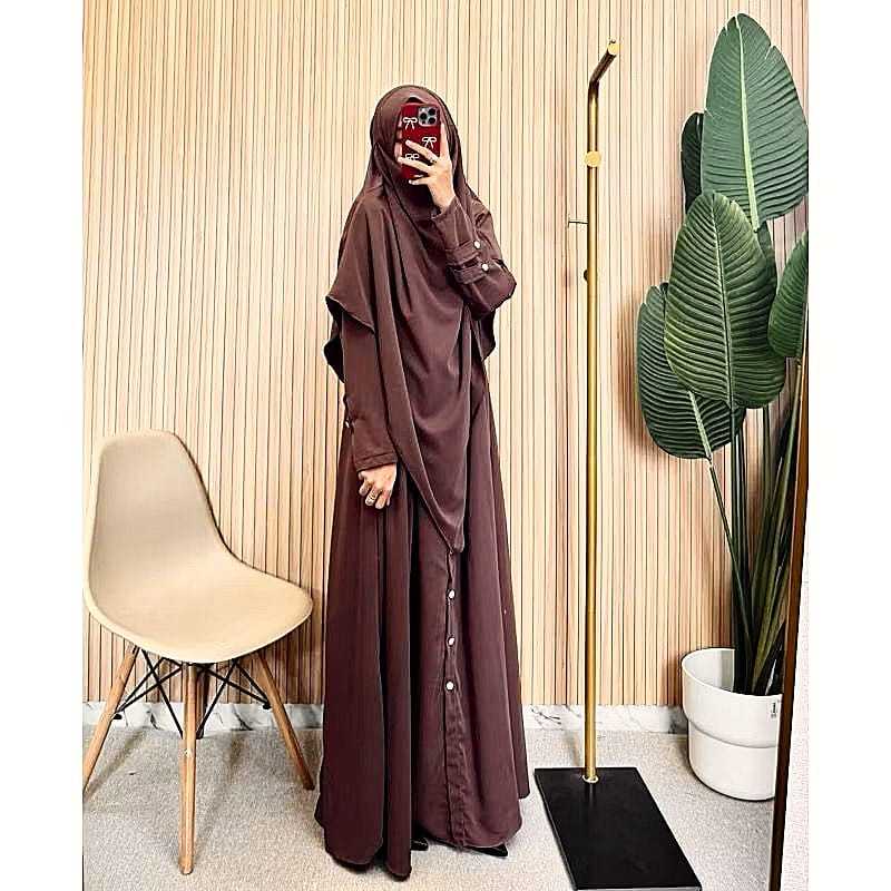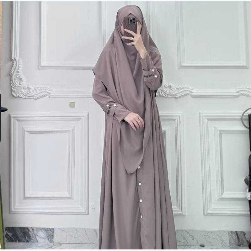 Gamis Syar'i terbaru umroh haji hitam abaya Arumi Set Khimar French Bahan Crinkel Ukuran M L XL XXL
