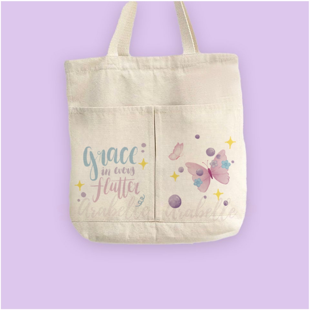 Totebag Kanvas Dua Kantong Bergambar Kupu Kupu Quotes/Totebag Kanvas/Totebag Sekolah/Totebag Jalan Jalan/