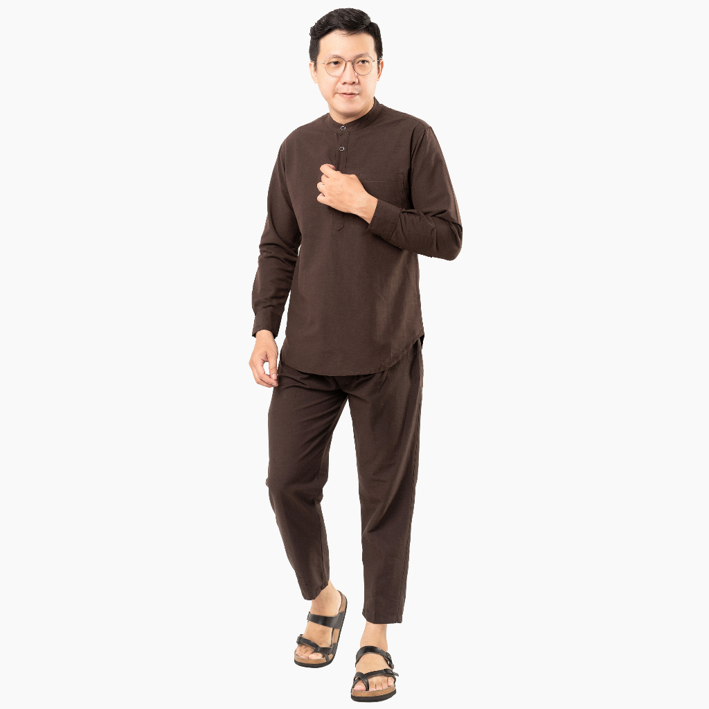 Jane Frey Clothing Setelan Kurta Pria 8105 Long Kurta Set M-XL Kurta Panjang Mahogany Best Seller