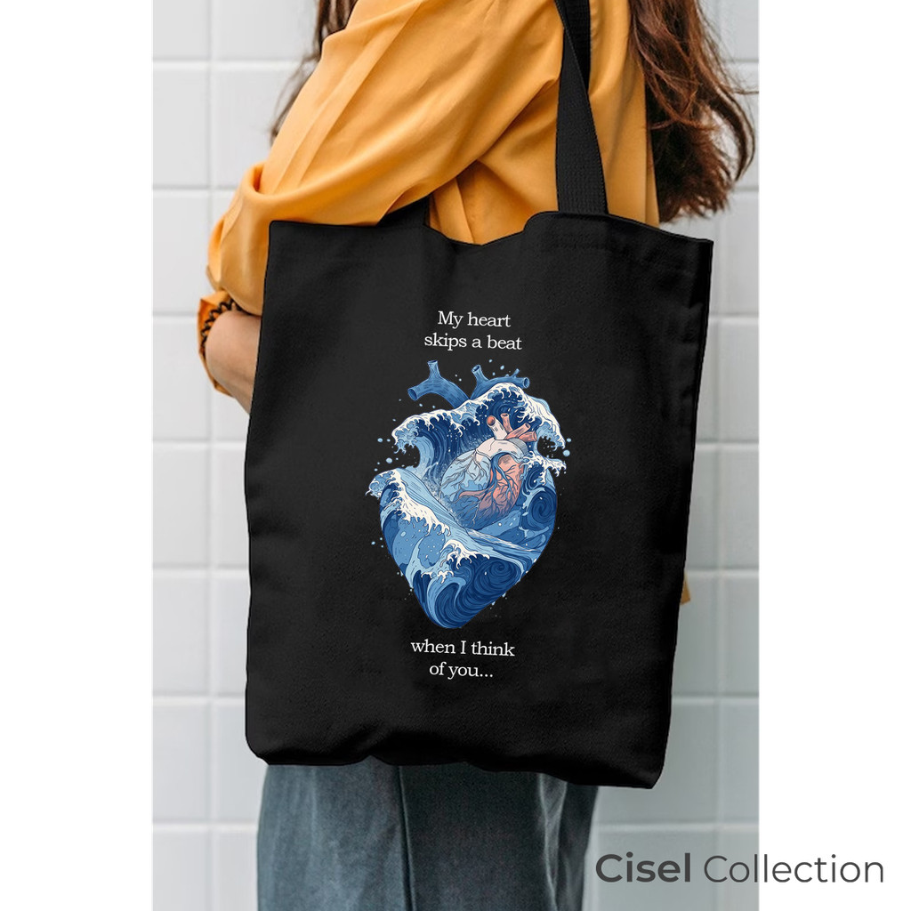 CISEL Tote Bag Hitam Tas Kanvas TEBAL Resleting Blue Biru Aesthetic Ukuran 30x40 Cisel Collection