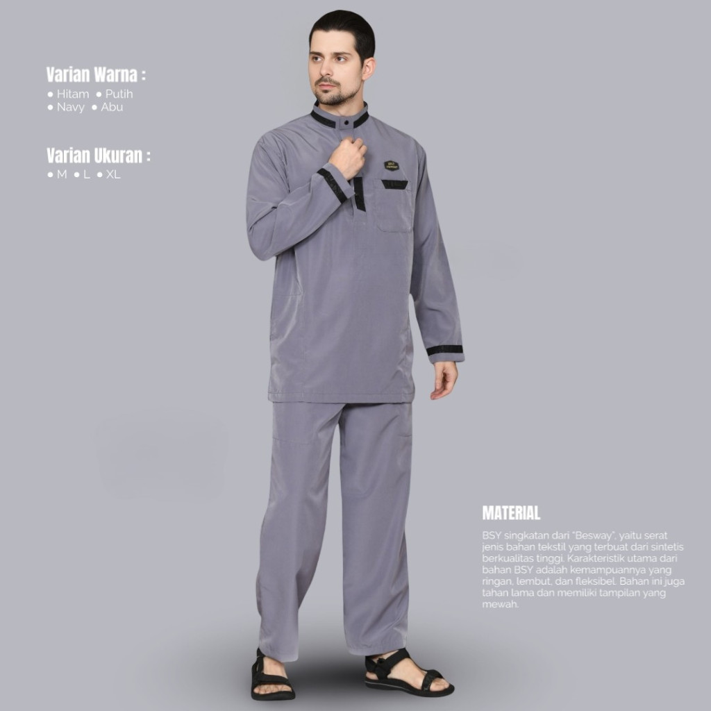 Koko Setelan Laki Laki Dewasa Model List / Baju Koko Kurta Setelan Lengan Panjang / Fashion Muslim Pria Terbaru