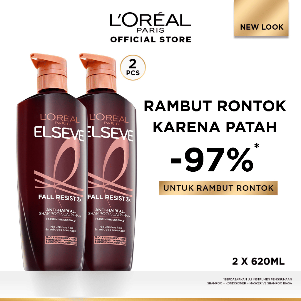 [PAKET HEMAT ISI 2] L'Oreal Paris Fall Resist 3x Anti-Hairfall Shampoo 620ml x2pcs Scalp Hair Care dengan Arginine Prote