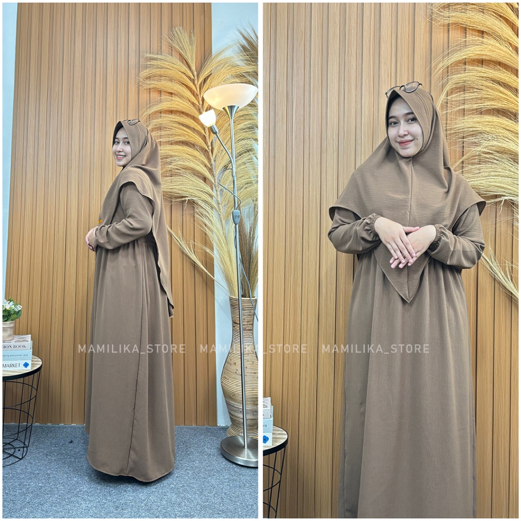 Medina Set Hijab Gamis Syari Crinkle Airflow Adem