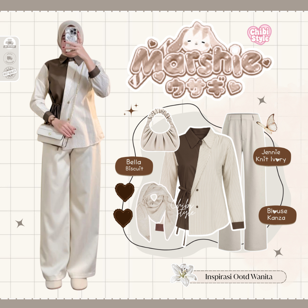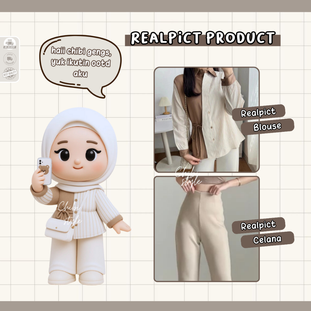 Oneset Wanita Kekinian Ootd Korean | Hijab Bella, Kanza Blouse, Celana Knit | fit Seleb -CS21