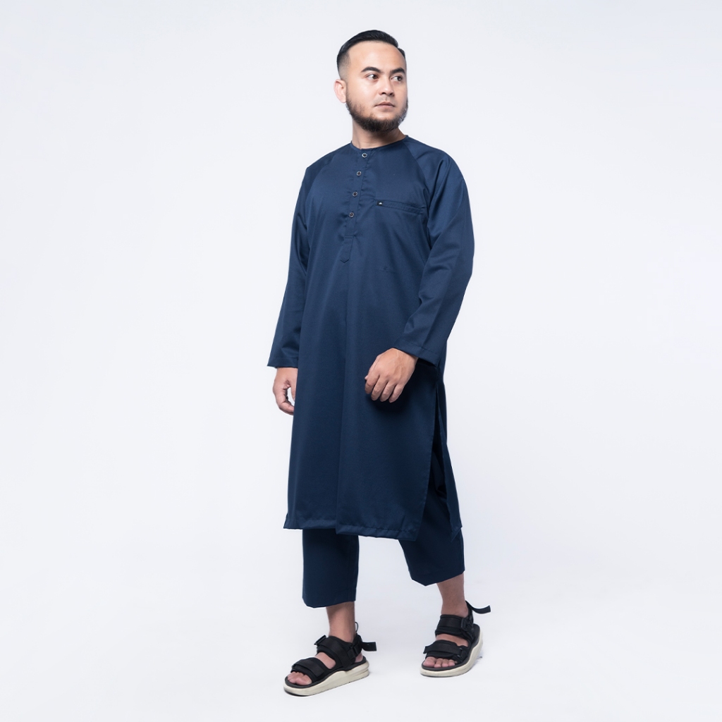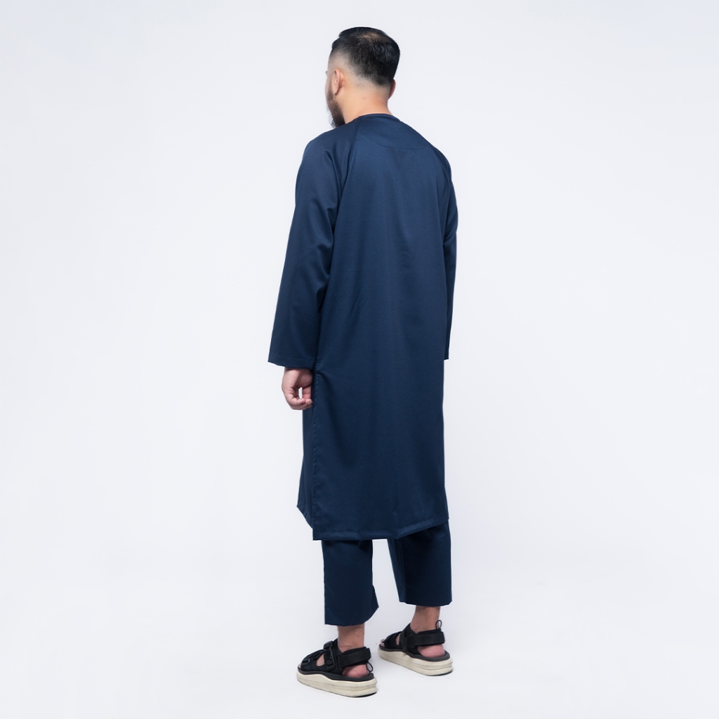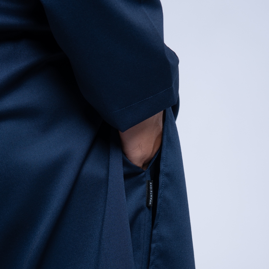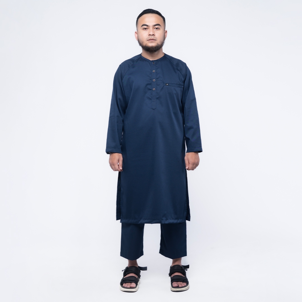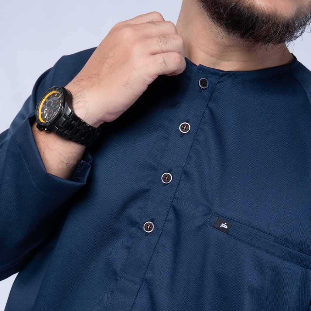 KHOIRUMMAH Kurta Set Ahbab - Koko Kurta Stelan Polos Pria Lengan Panjang - Navy