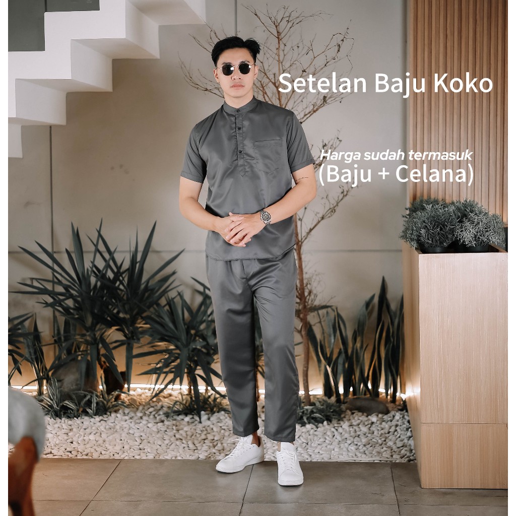 SETELAN Baju Koko Pria ONE SET Lengan Pendek Size M-XL