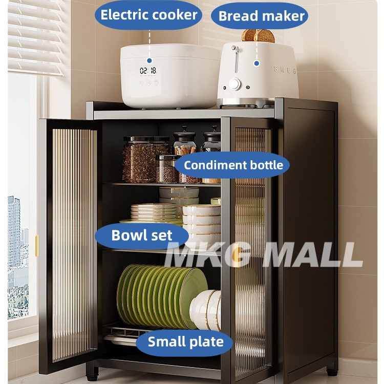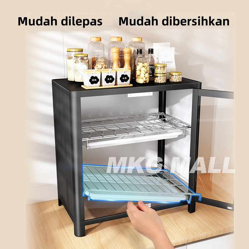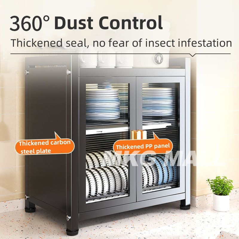 Rak Piring Dapur Rak Lemari Multifungsi Dengan Pintu Kabinet Sepenuhnya Tertutup Anti Serangga Stainless Meja Rak