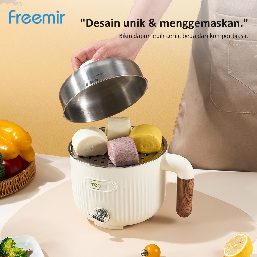 [free gift] freemir lifestyle Panci Listrik Mini Electric Cooker white 1.6L Anti Lengket SUS 304 Aman Panci panas/penguk