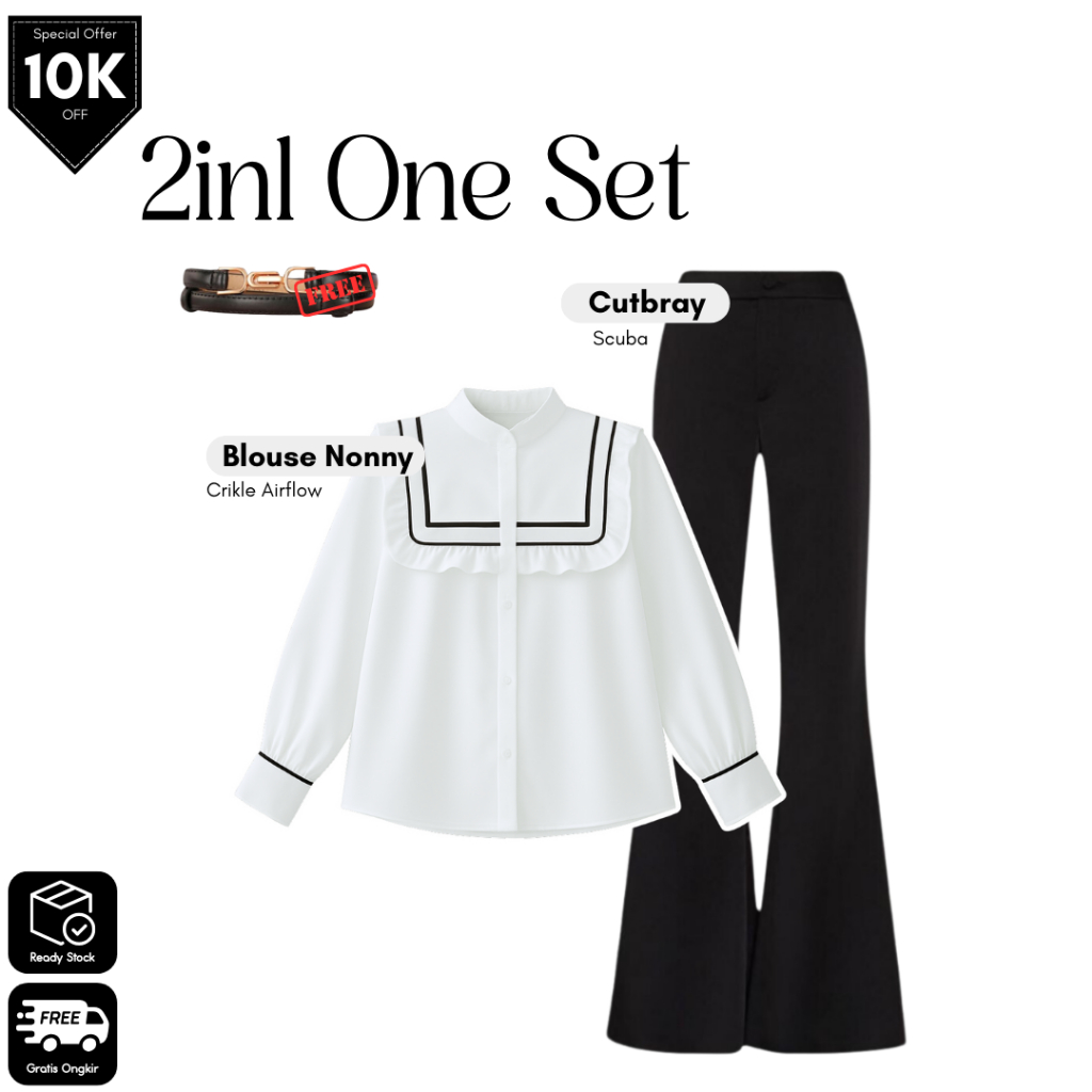 GRL 133 | One Set Remaja Wanita 3in1 | Blouse + Cutbray + Bella Square | fit Korean Look Cantik