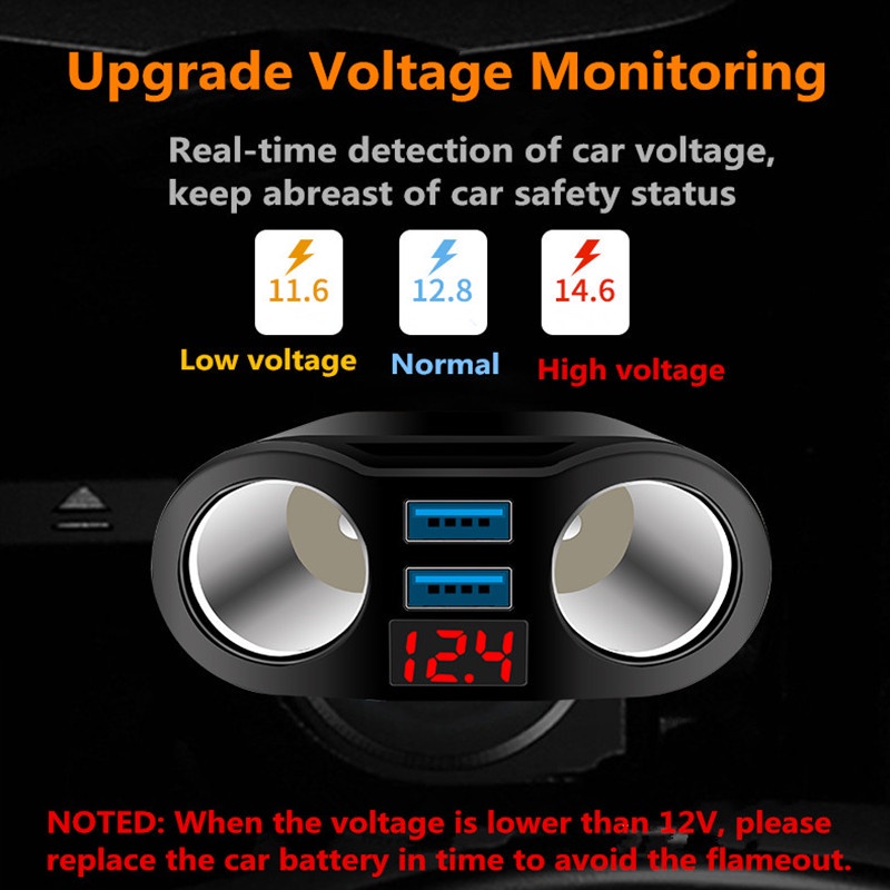 FLASH SALE Mipanda 4 in 1 Charger Cas Mobil 3.1A Fast Charging dengan Monitor Voltage 2 Cigarette Lighter Socket