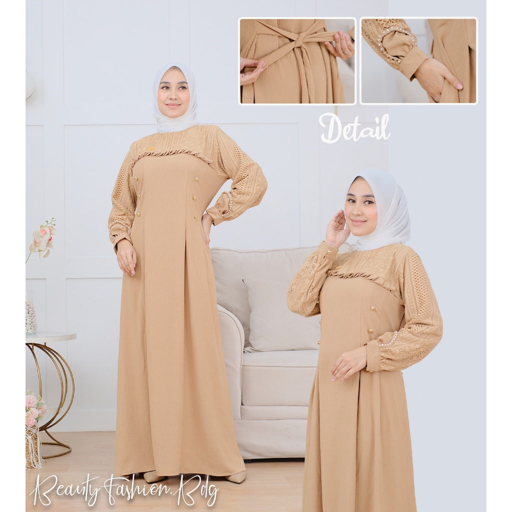 BeautyFashion - Gamis Wanita Muslim ARSYILA Dress Mix Brukat Malika Payet Mutiara Crinckle Airflow Terbaru