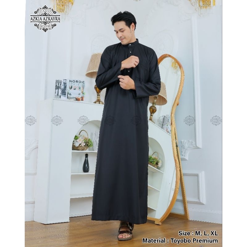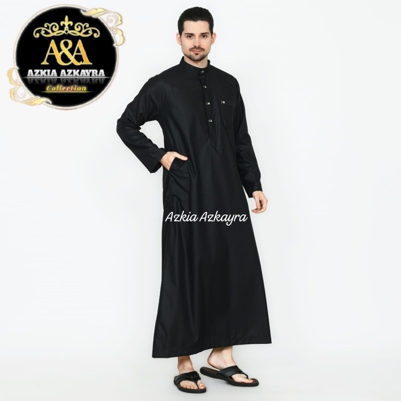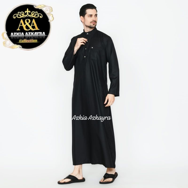 Jubah Gamis Pria Saudi Basic Thobe Jubbah Baju Muslim Polos Dewasa Lengan Panjang Hitam Haji Umroh